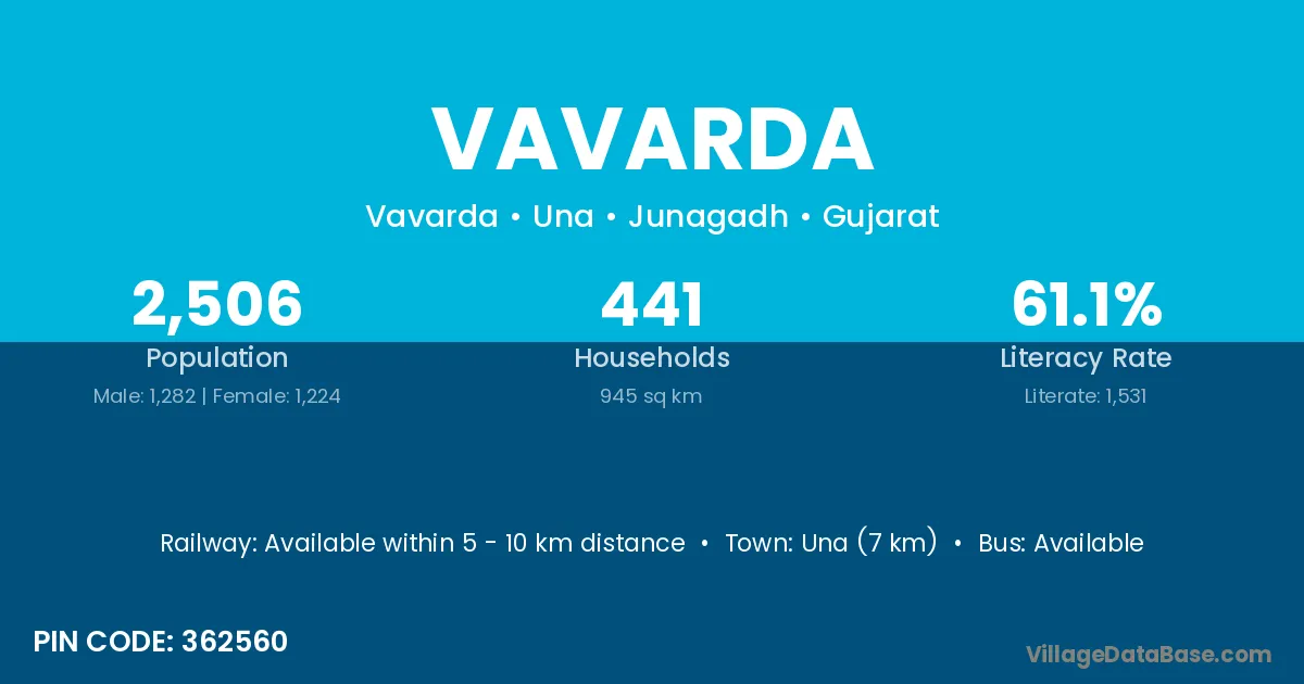 According to Census 2011 information, the village code of Vavarda village is 362560.