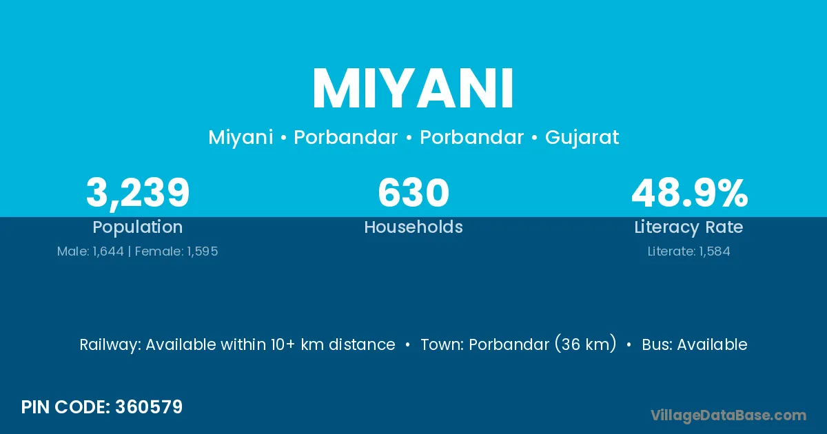 According to Census 2011 information, the village code of Miyani village is 370655.