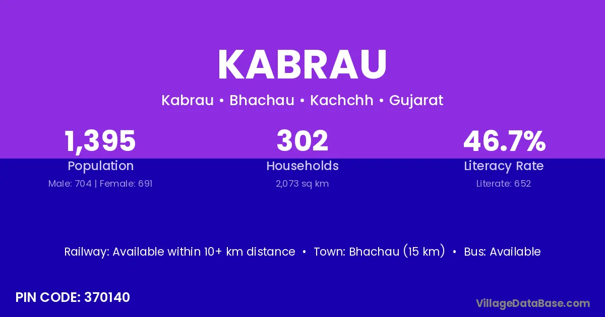 Bhachau (15 km) is the nearest town to Kabrau village for major economic activities and is located approximately 15 km away.