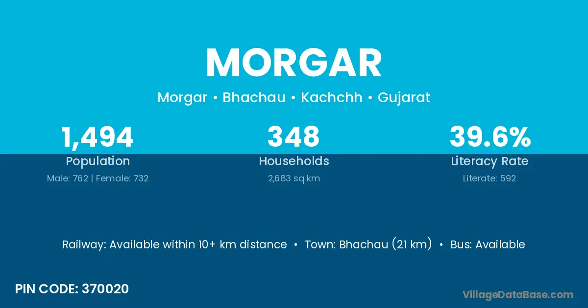 Bhachau (21 km) is the nearest town to Morgar village for major economic activities and is located approximately 21 km away.