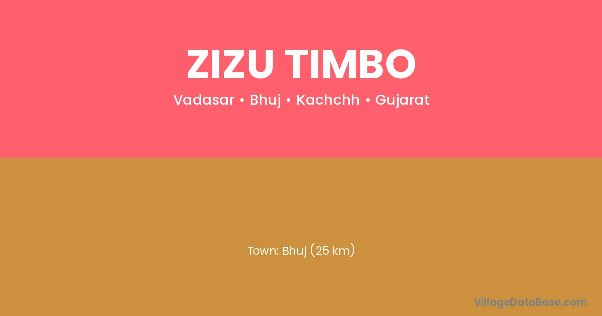 Zizu Timbo village is located in the Bhuj Taluka of the Kachchh district in Gujarat .