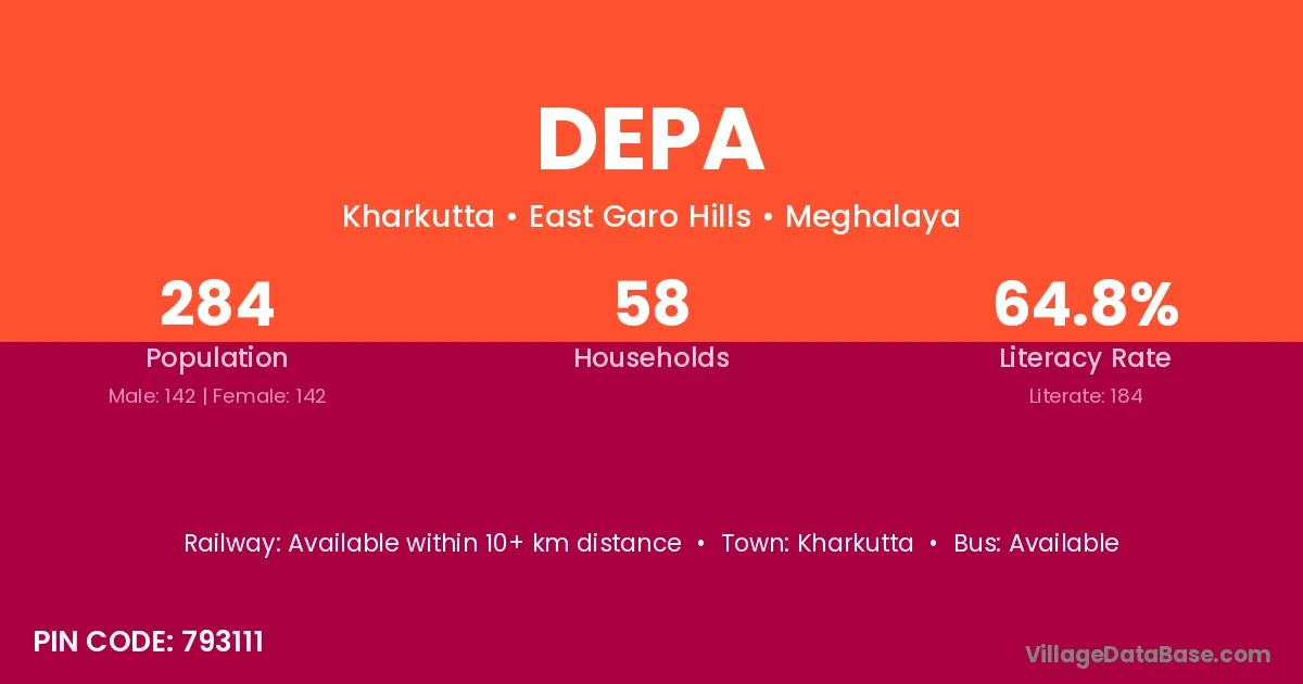 The literacy rate of Depa village is 63.10%. Male literacy stands at 69.27% and female literacy at 57.21%.