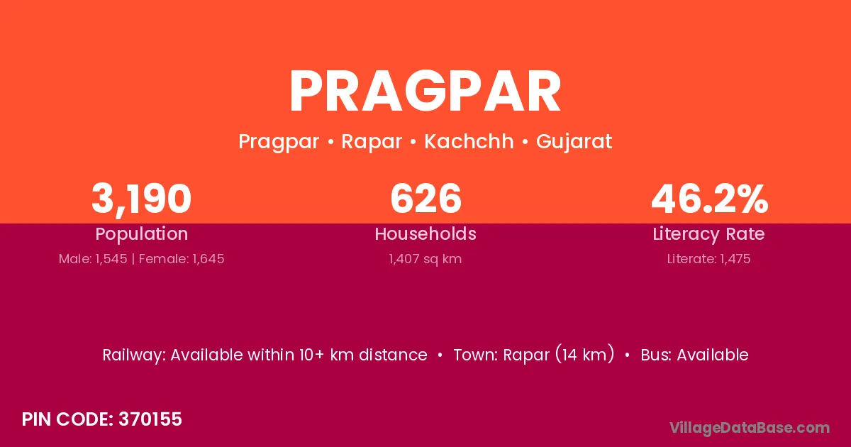 Mundra (9 km) is the nearest town to Pragpar village for major economic activities and is located approximately 9 km away.
