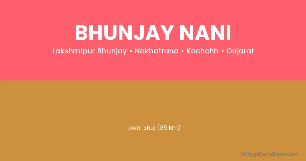 Bhuj (85 km) is the nearest town to Bhunjay Nani village for major economic activities and is located approximately 85 km away.