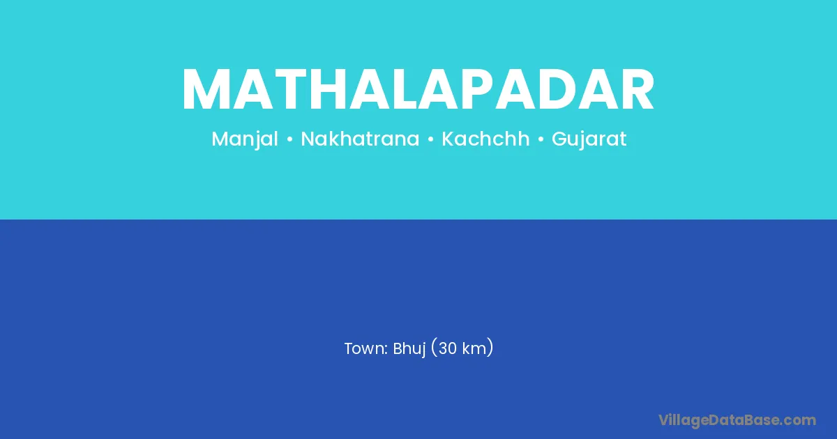 Bhuj (30 km) is the nearest town to Mathalapadar village for major economic activities and is located approximately 30 km away.