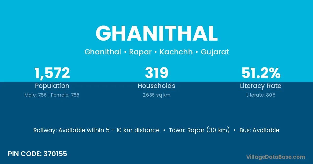 Rapar (30 km) is the nearest town to Ghanithal village for major economic activities and is located approximately 30 km away.