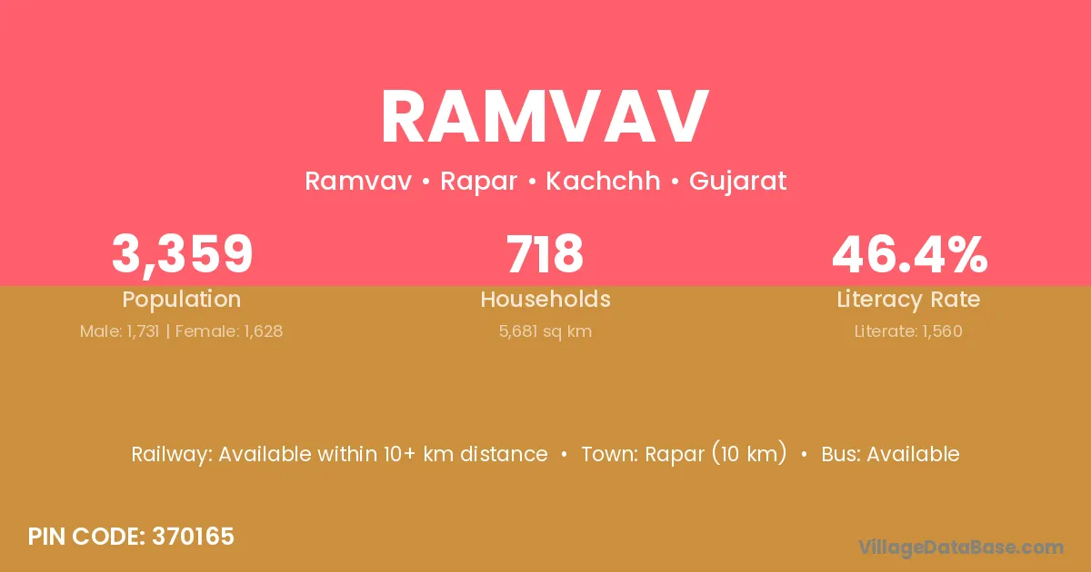 Rapar (10 km) is the nearest town to Ramvav village for major economic activities and is located approximately 10 km away.