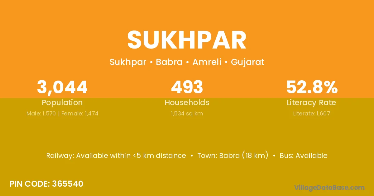 Rapar (51 km) is the nearest town to Sukhpar village for major economic activities and is located approximately 51 km away.