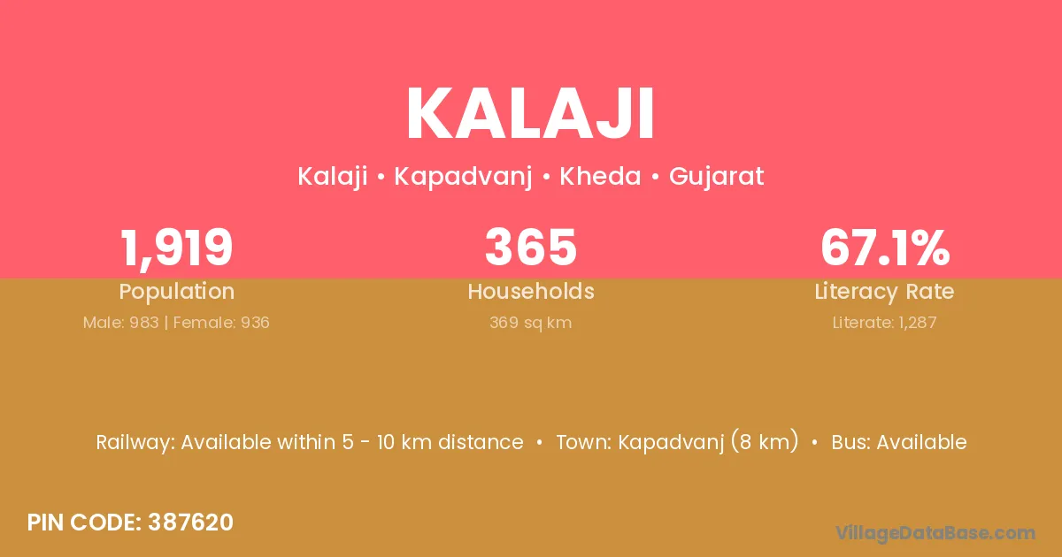Kapadvanj (8 km) is the nearest town to Kalaji village for major economic activities and is located approximately 8 km away.