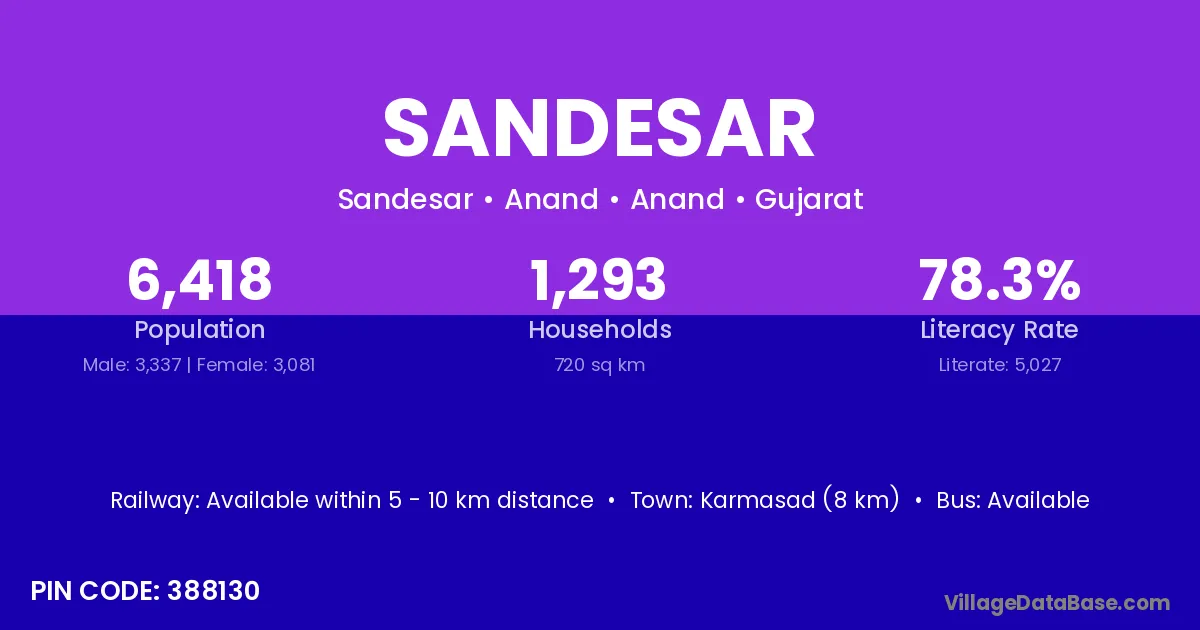 Kathlal (18 km) is the nearest town to Sandesar village for major economic activities and is located approximately 18 km away.