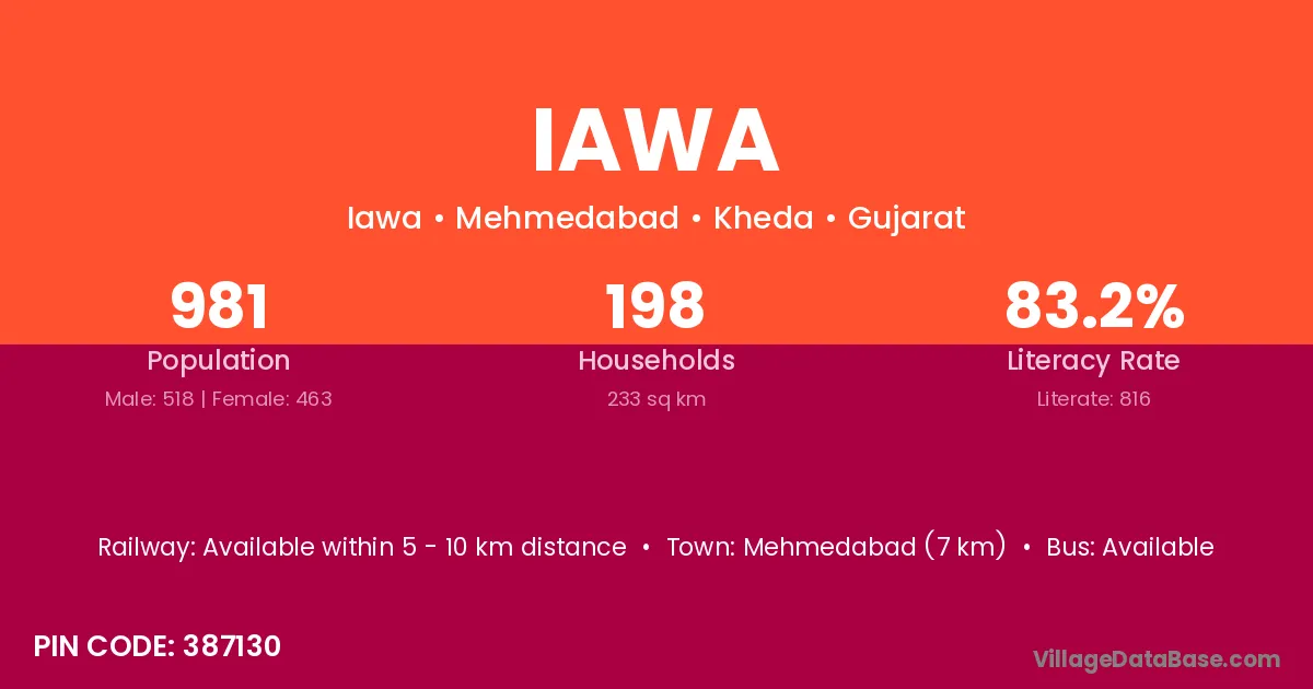 Mehmedabad (7 km) is the nearest town to Iawa village for major economic activities and is located approximately 7 km away.