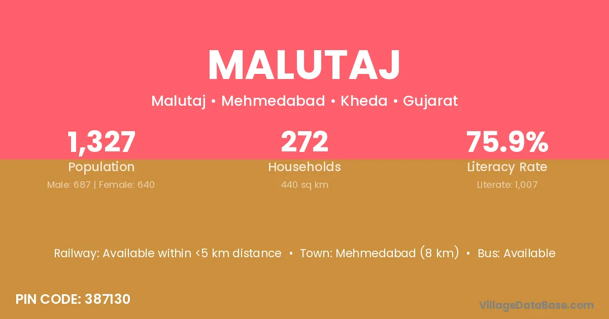 Mehmedabad (8 km) is the nearest town to Malutaj village for major economic activities and is located approximately 8 km away.