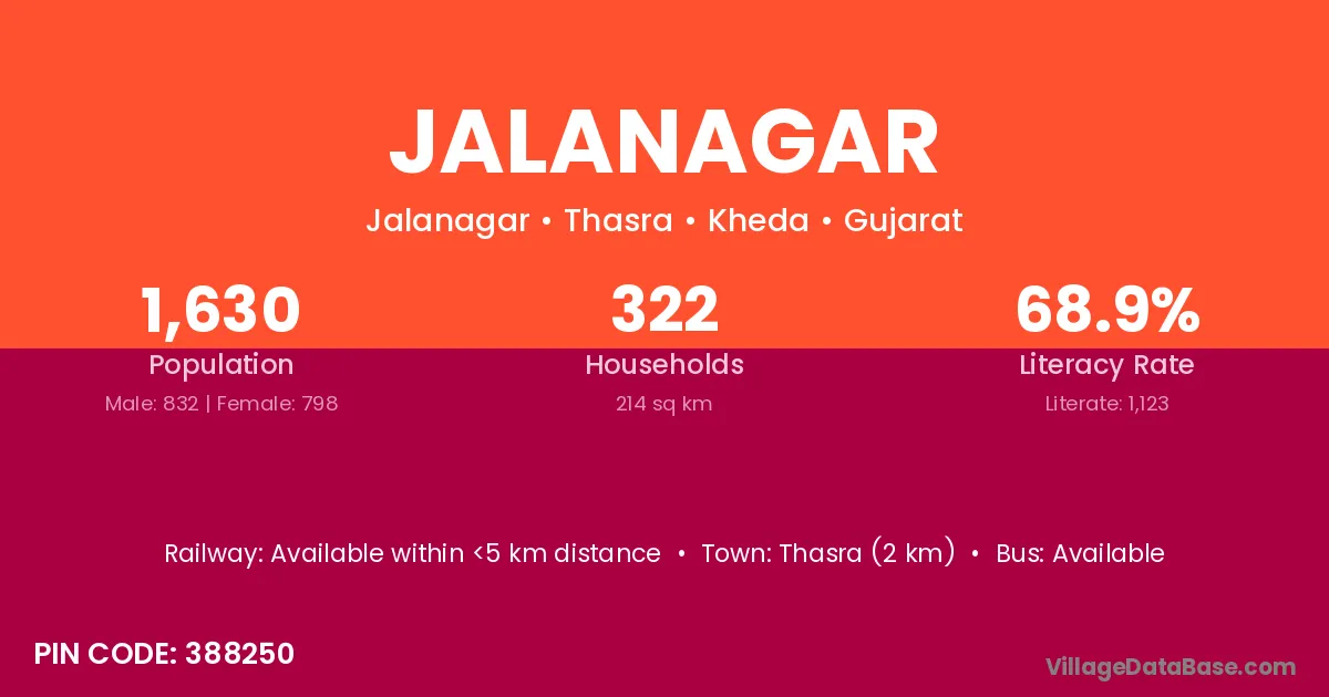 Thasra (2 km) is the nearest town to Jalanagar village for major economic activities and is located approximately 2 km away.