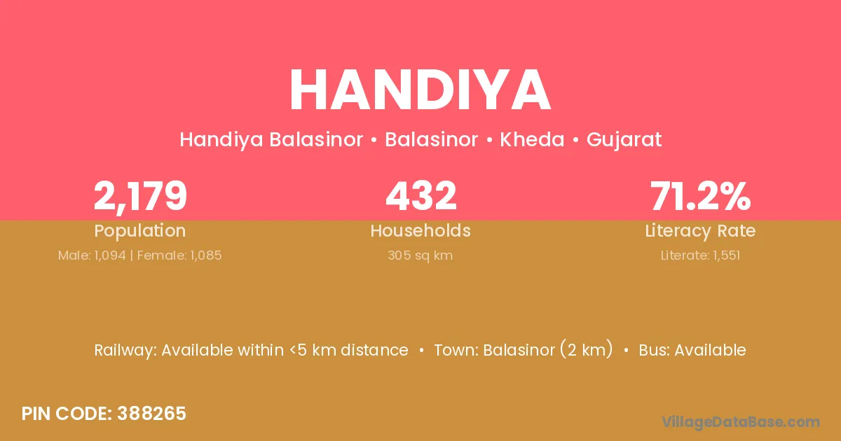 Virpur (5 km) is the nearest town to Handiya village for major economic activities and is located approximately 5 km away.
