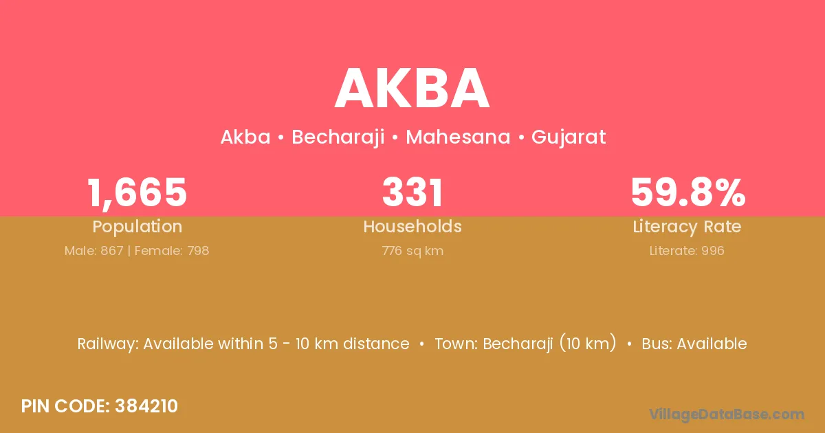Becharaji (10 km) is the nearest town to Akba village for major economic activities and is located approximately 10 km away.