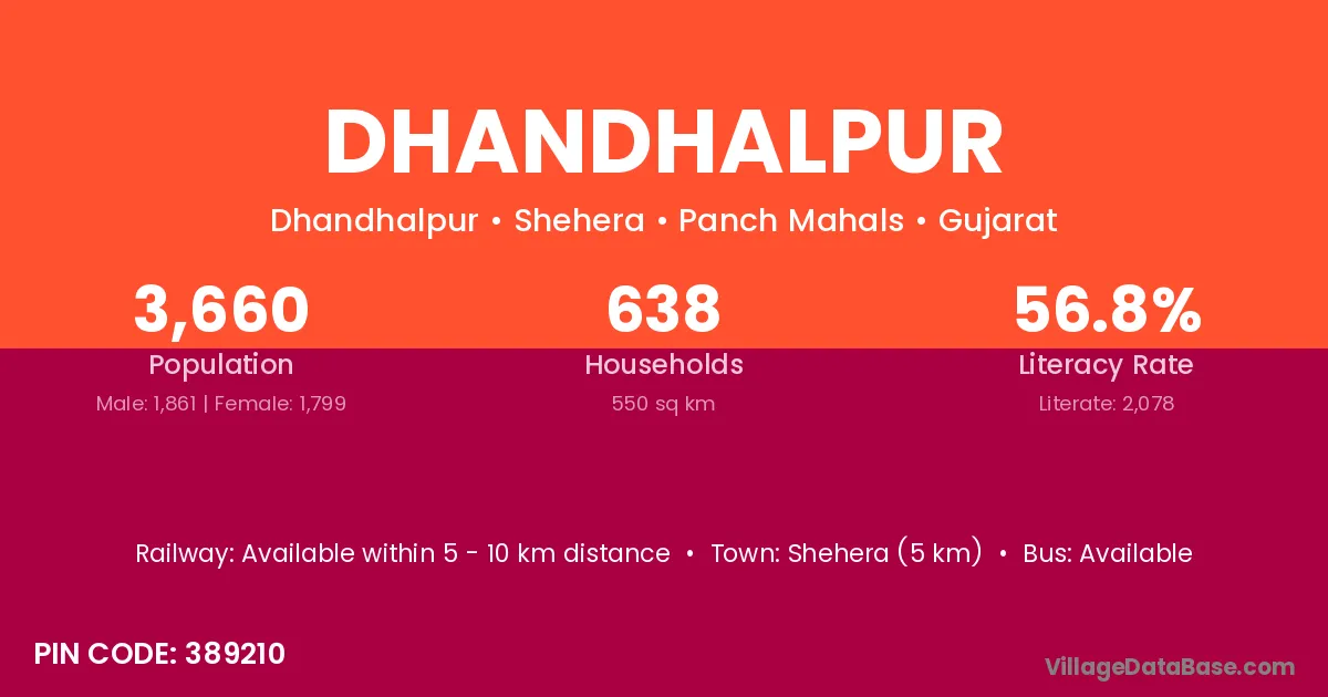 Kadi (11 km) is the nearest town to Dhandhalpur village for major economic activities and is located approximately 11 km away.