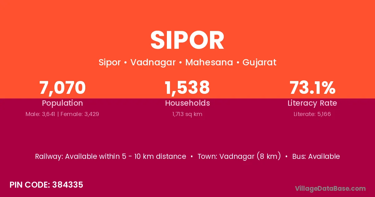Vadnagar (8 km) is the nearest town to Sipor village for major economic activities and is located approximately 8 km away.