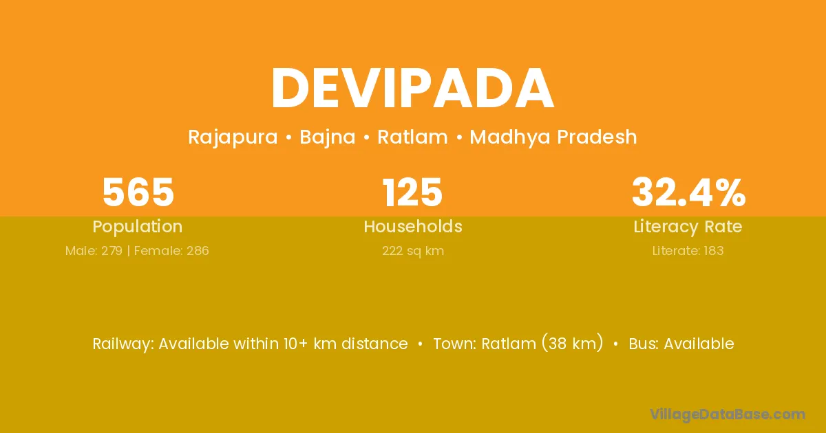 Dediapada (20 km) is the nearest town to Devipada village for major economic activities and is located approximately 20 km away.