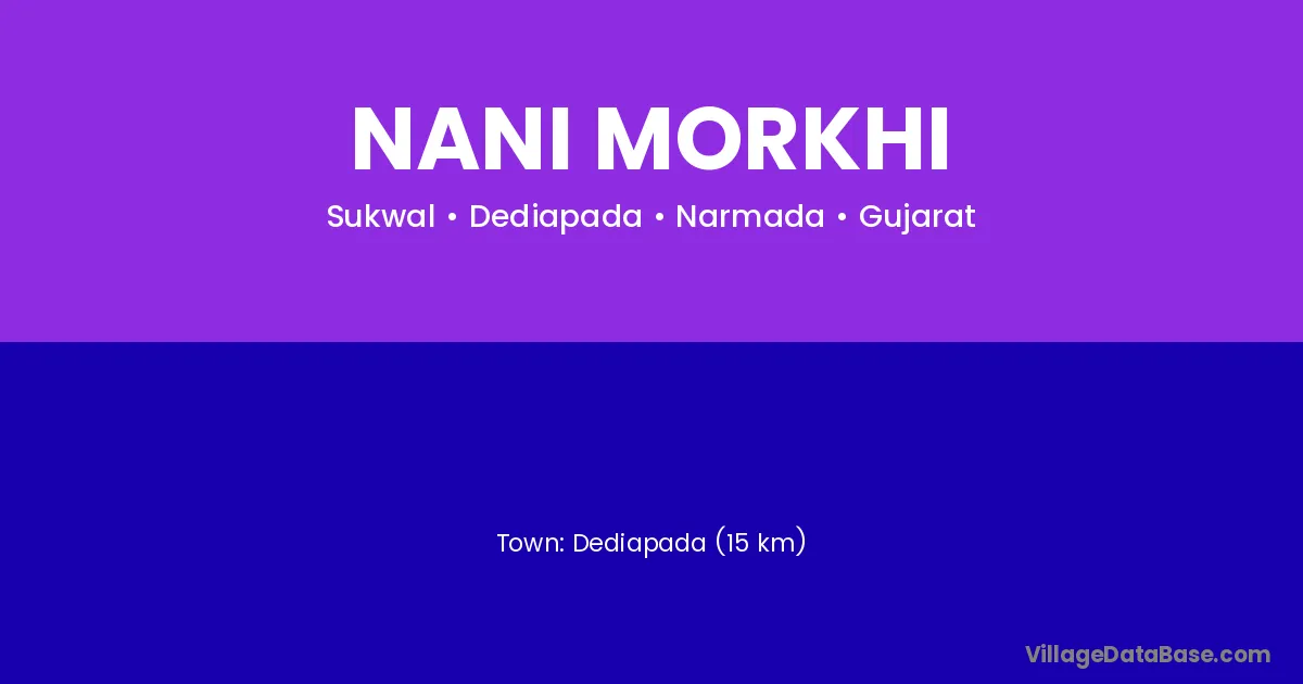 Nani Morkhi village is located in the Dediapada Taluka of the Narmada district in Gujarat .