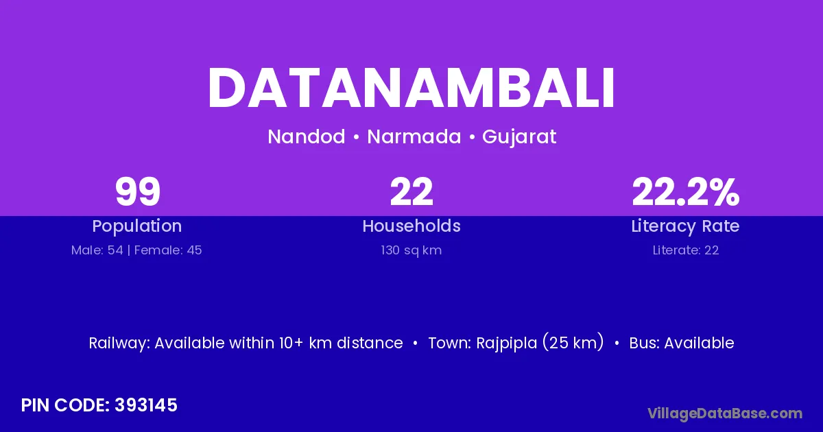 Rajpipla (25 km) is the nearest town to Datanambali village for major economic activities and is located approximately 25 km away.
