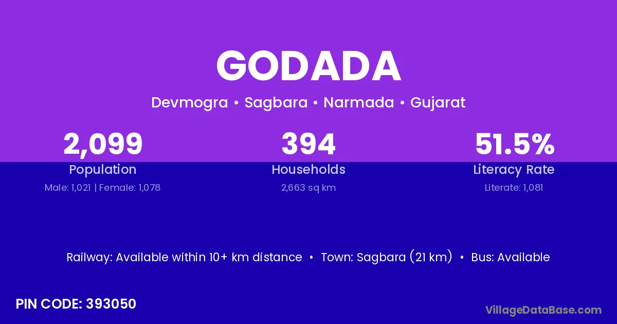 According to Census 2011 information, the village code of Godada village is 393050.