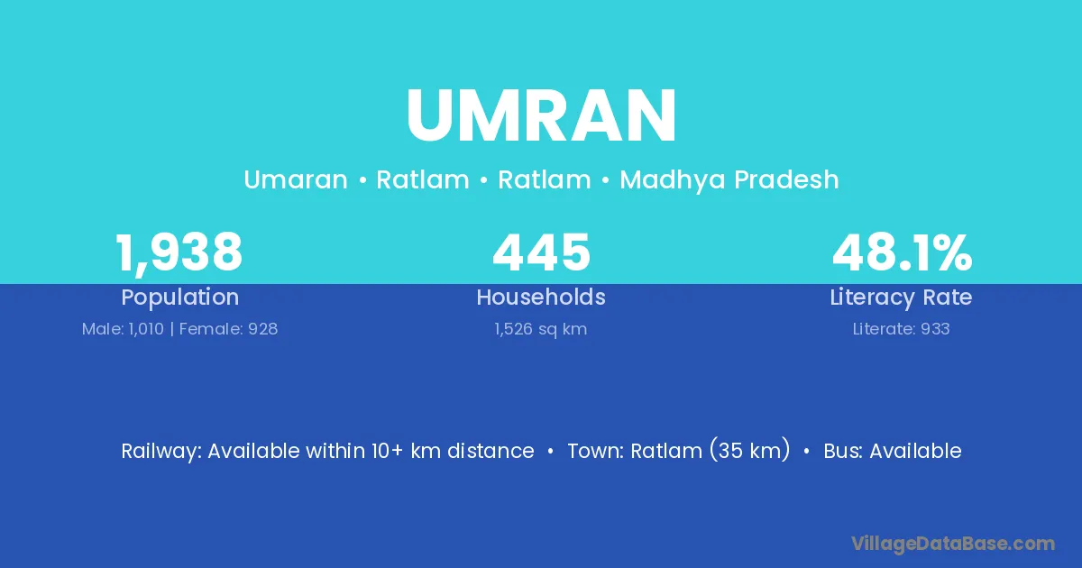 Sagbara (26 km) is the nearest town to Umran village for major economic activities and is located approximately 26 km away.