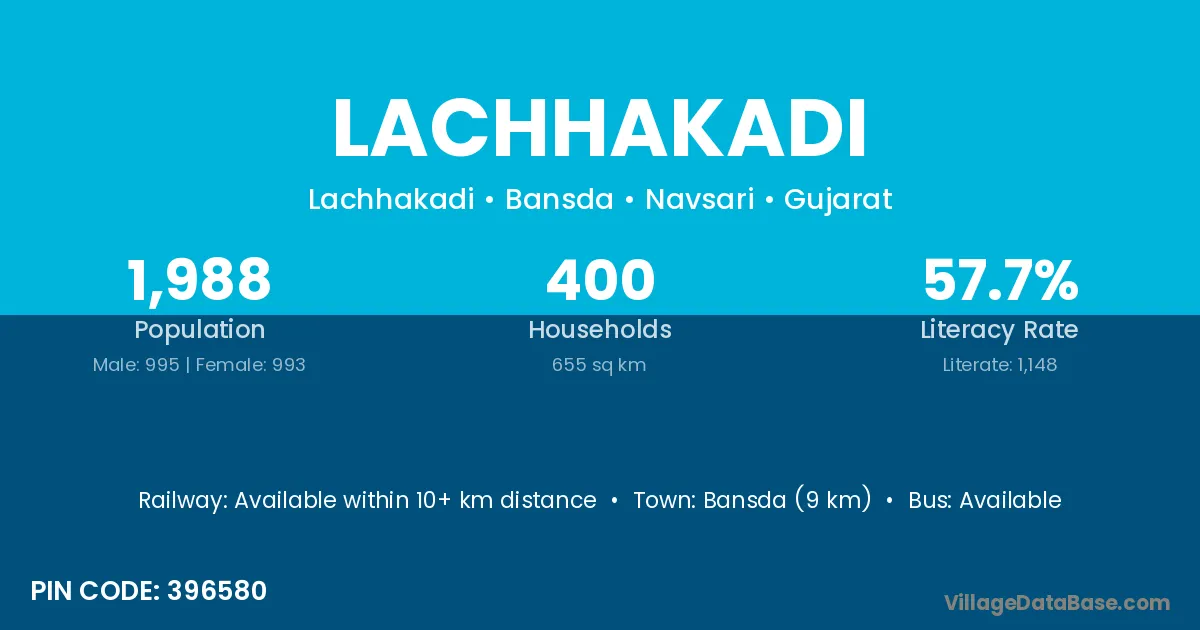 Bansda (9 km) is the nearest town to Lachhakadi village for major economic activities and is located approximately 9 km away.