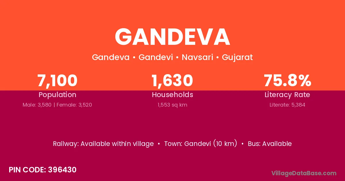 Gandevi (10 km) is the nearest town to Gandeva village for major economic activities and is located approximately 10 km away.
