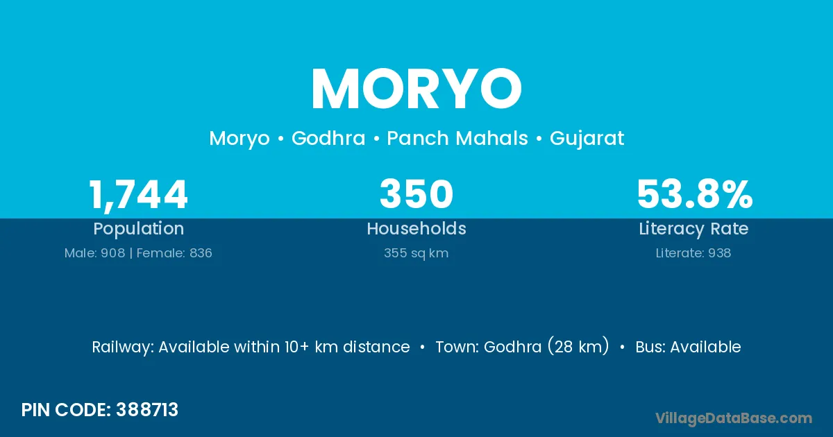 Godhra (28 km) is the nearest town to Moryo village for major economic activities and is located approximately 28 km away.