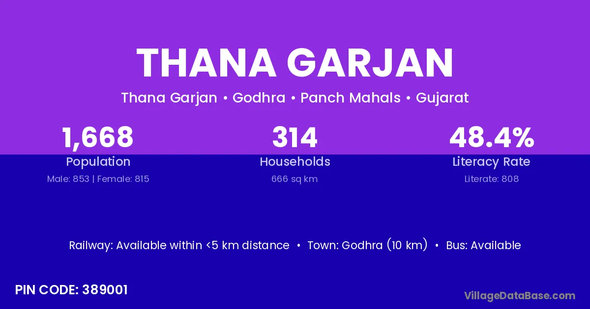 Godhra (10 km) is the nearest town to Thana Garjan village for major economic activities and is located approximately 10 km away.