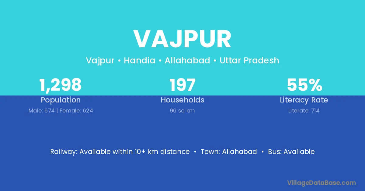Bodeli (25 km) is the nearest town to Vajpur village for major economic activities and is located approximately 25 km away.