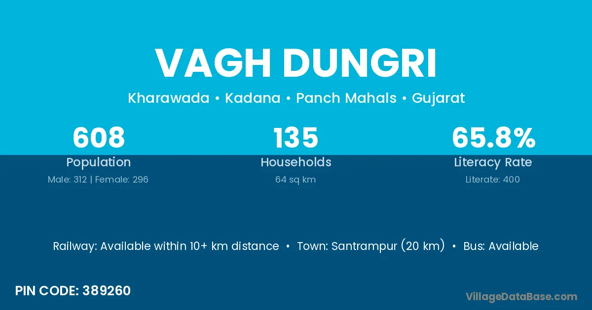 Vagh Dungri village has a total population of 608 people, of which 312 are males and 296 are females.