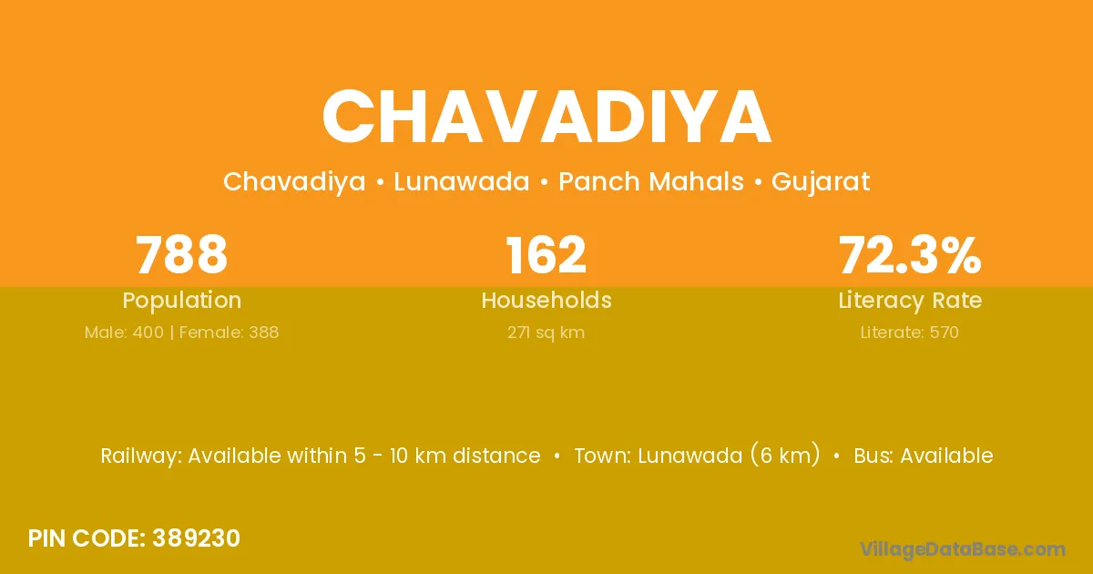 According to Census 2011 information, the village code of Chavadiya village is 389230.