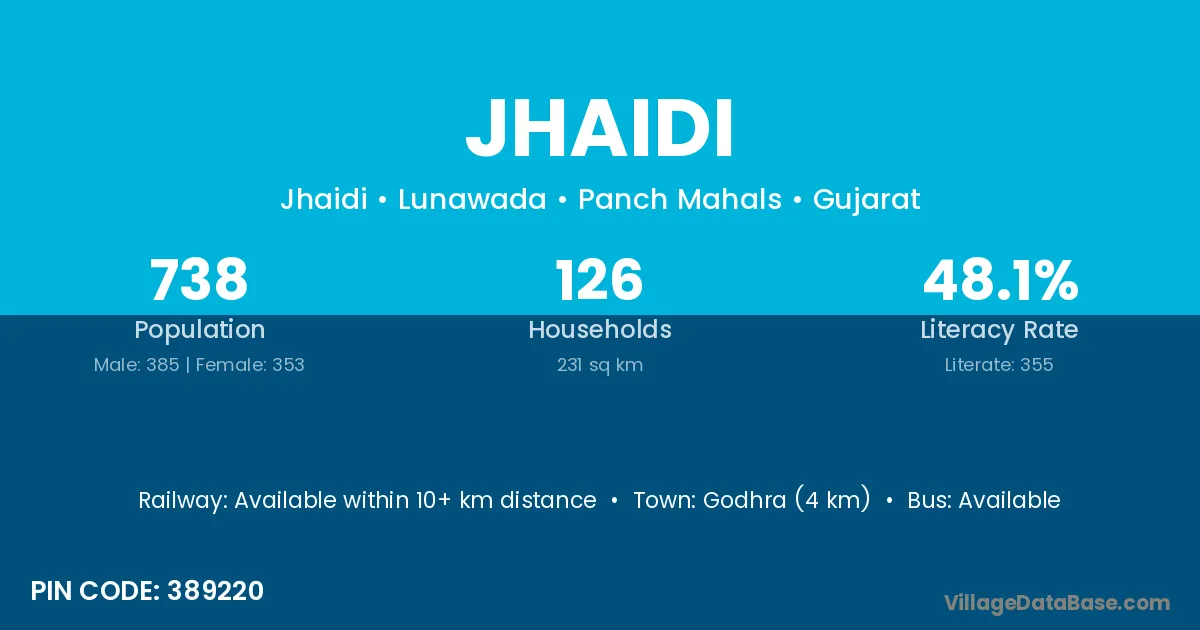 Godhra (4 km) is the nearest town to Jhaidi village for major economic activities and is located approximately 4 km away.