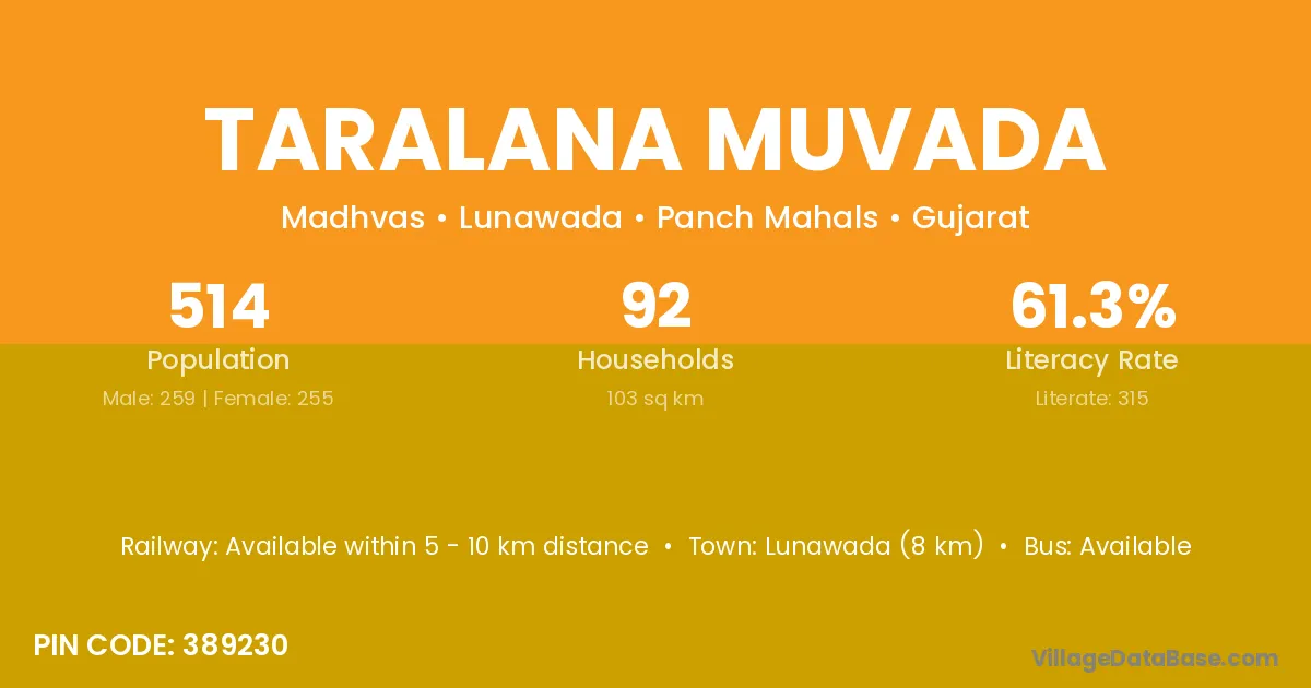 According to Census 2011 information, the village code of Taralana Muvada village is 389230.