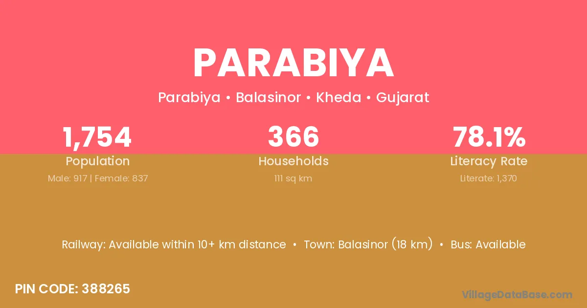 Godhra (37 km) is the nearest town to Parabiya village for major economic activities and is located approximately 37 km away.