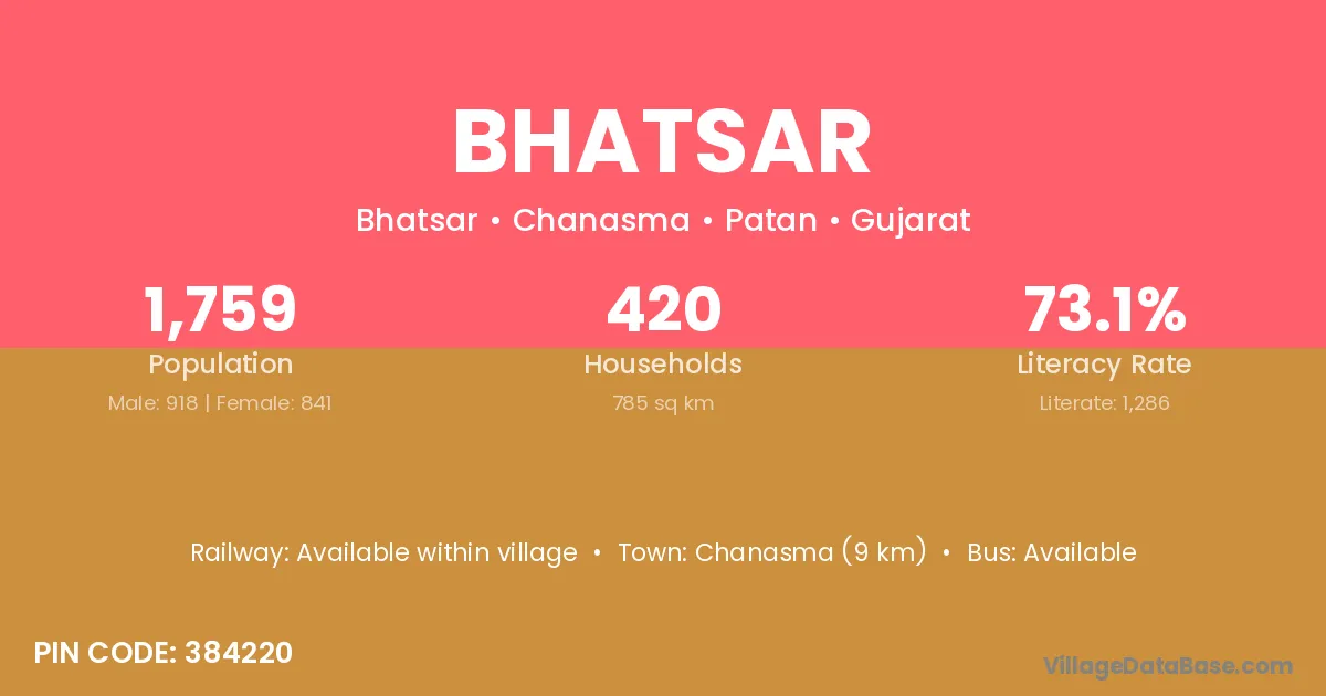 Bhatsar village has a total population of 1,759 people, of which 918 are males and 841 are females.