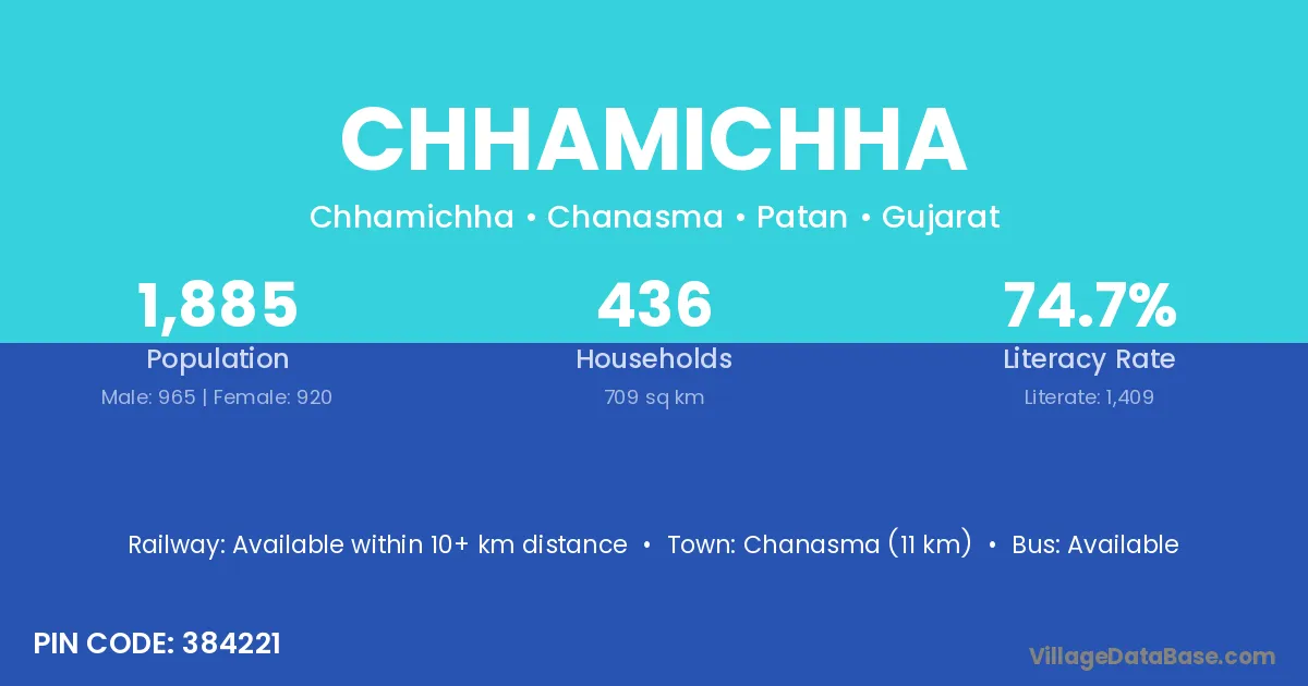 Chanasma (11 km) is the nearest town to Chhamichha village for major economic activities and is located approximately 11 km away.