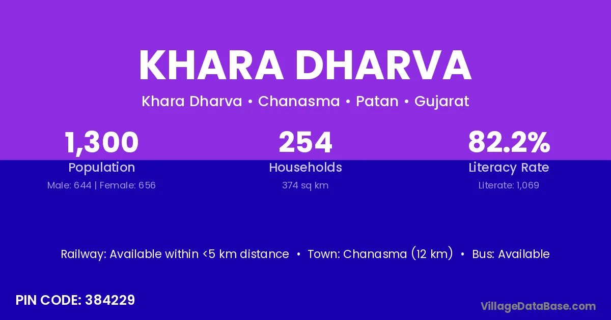 Chanasma (12 km) is the nearest town to Khara Dharva village for major economic activities and is located approximately 12 km away.
