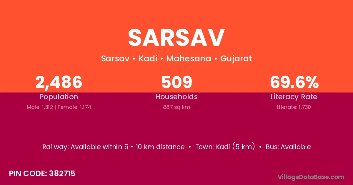 Chanasma (12 km) is the nearest town to Sarsav village for major economic activities and is located approximately 12 km away.
