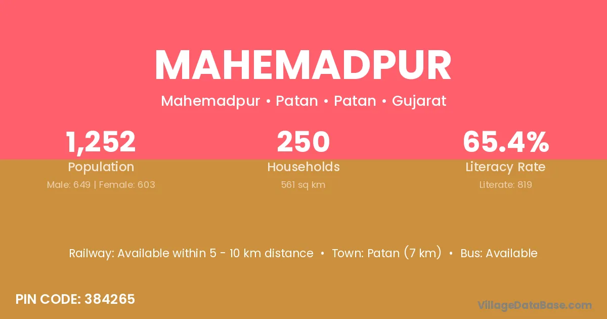 Patan (7 km) is the nearest town to Mahemadpur village for major economic activities and is located approximately 7 km away.