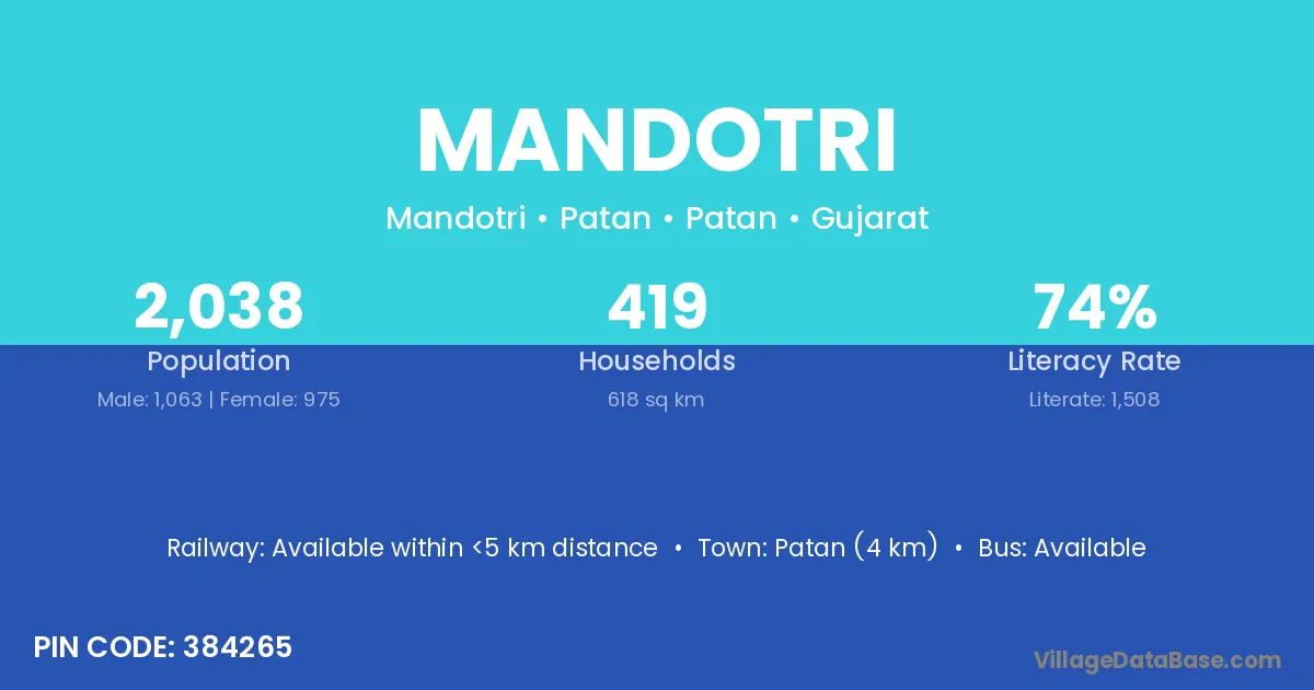Mandotri village has a total population of 2,038 people, of which 1,063 are males and 975 are females.