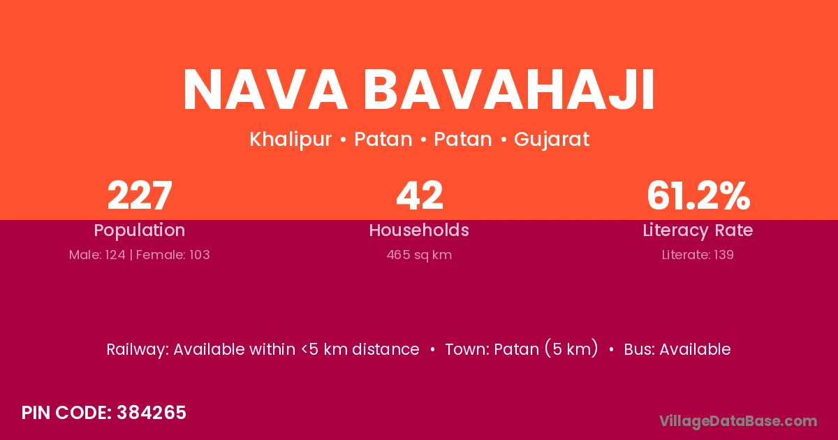 Nava Bavahaji village has a total population of 227 people, of which 124 are males and 103 are females.