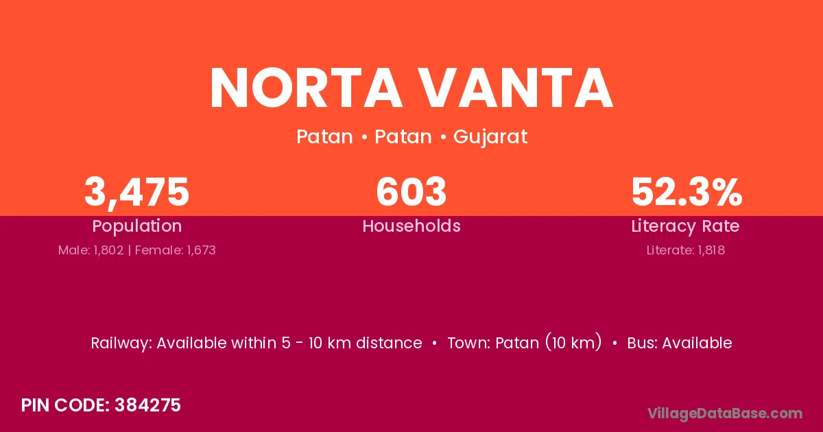 Patan (10 km) is the nearest town to Norta Vanta village for major economic activities and is located approximately 10 km away.