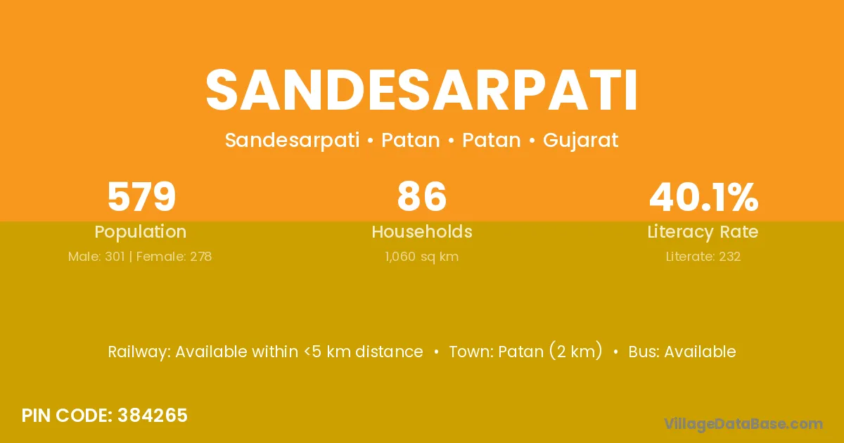 Patan (2 km) is the nearest town to Sandesarpati village for major economic activities and is located approximately 2 km away.