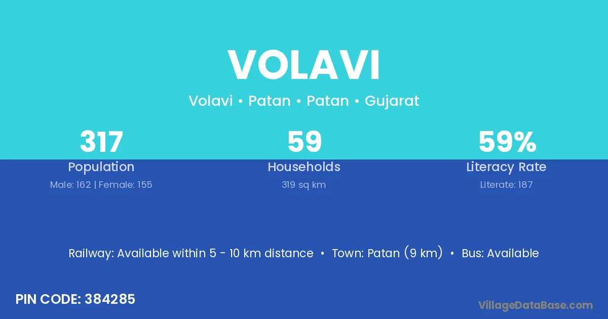 Patan (9 km) is the nearest town to Volavi village for major economic activities and is located approximately 9 km away.