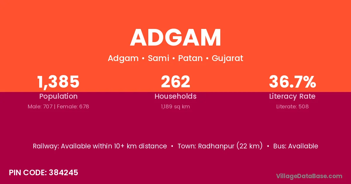 Radhanpur (22 km) is the nearest town to Adgam village for major economic activities and is located approximately 22 km away.
