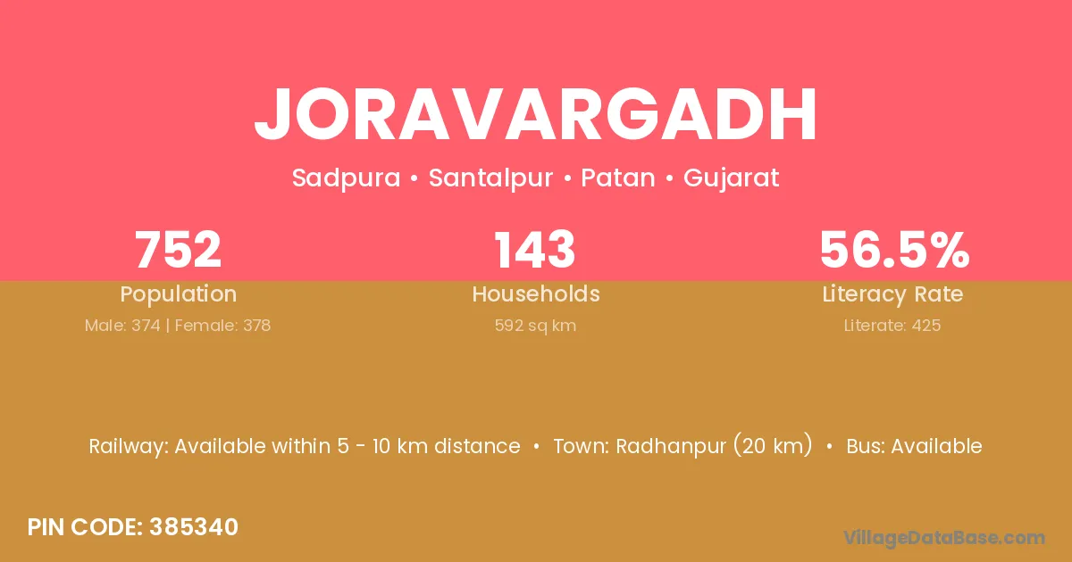 Radhanpur (20 km) is the nearest town to Joravargadh village for major economic activities and is located approximately 20 km away.