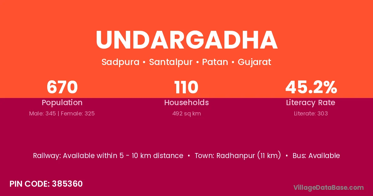Radhanpur (11 km) is the nearest town to Undargadha village for major economic activities and is located approximately 11 km away.