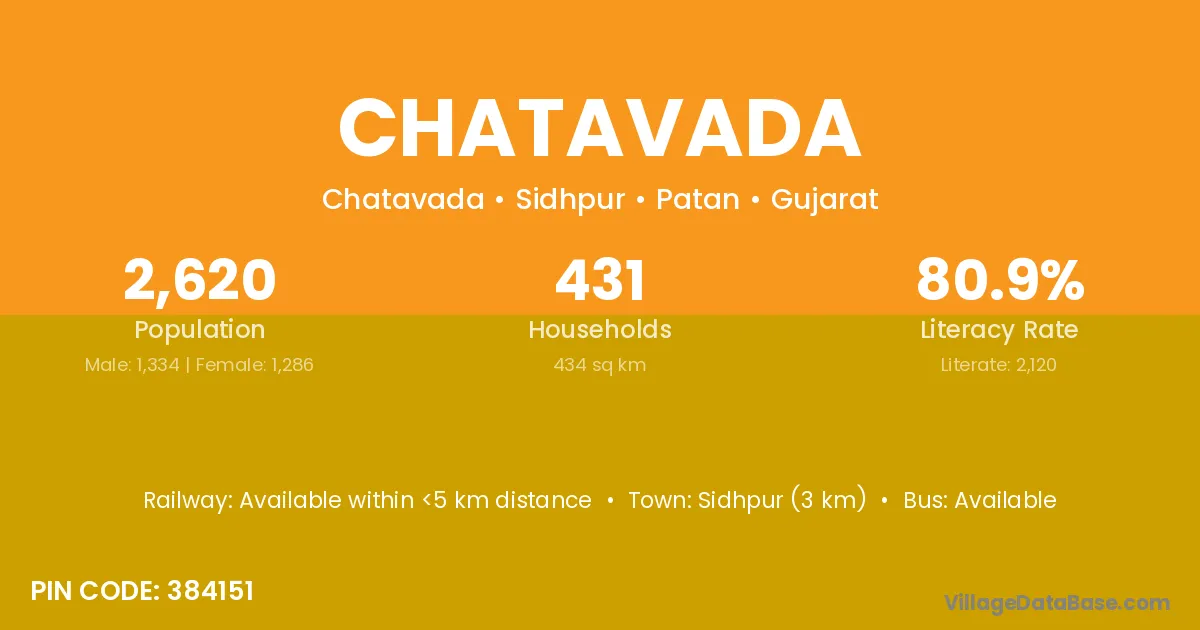 Sidhpur (3 km) is the nearest town to Chatavada village for major economic activities and is located approximately 3 km away.